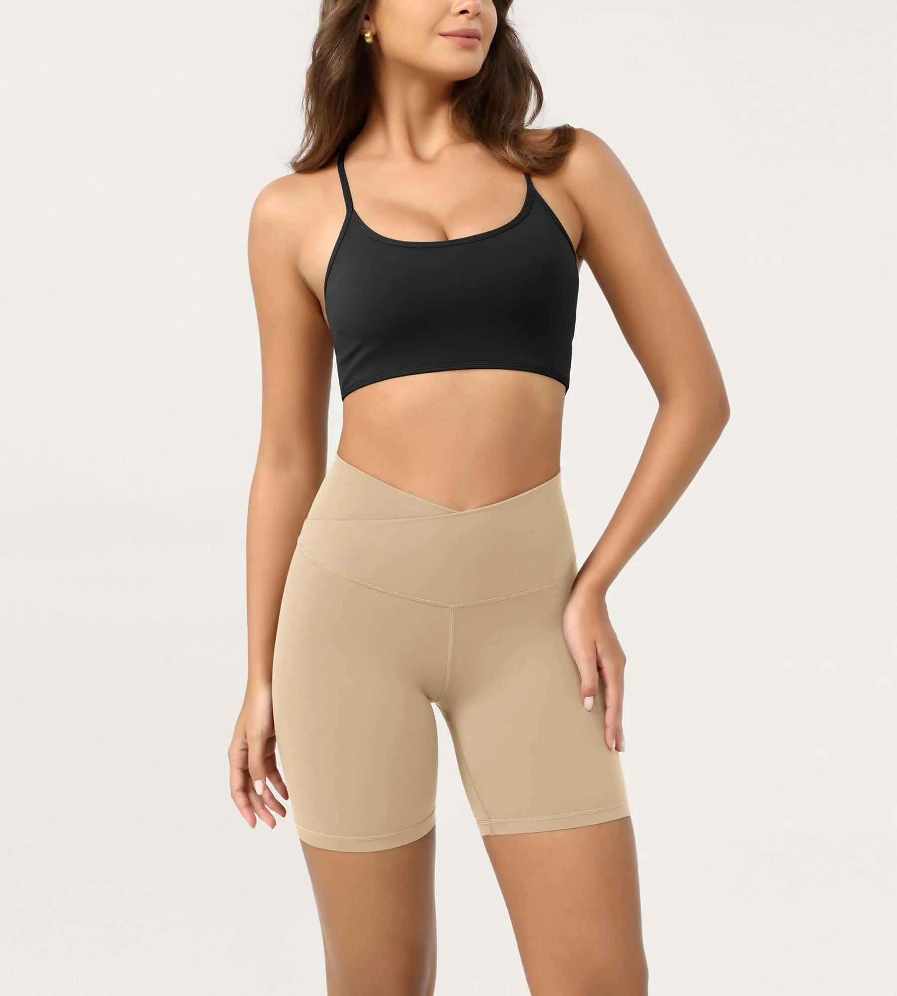 Experience ultimate comfort with the **Cloud Feeling 6-inch crossover yoga shorts**. Perfect for yoga, pilates, or casual lounging, these shorts combine a soft, cloud-like fabric with a flattering crossover waistband for support and style.