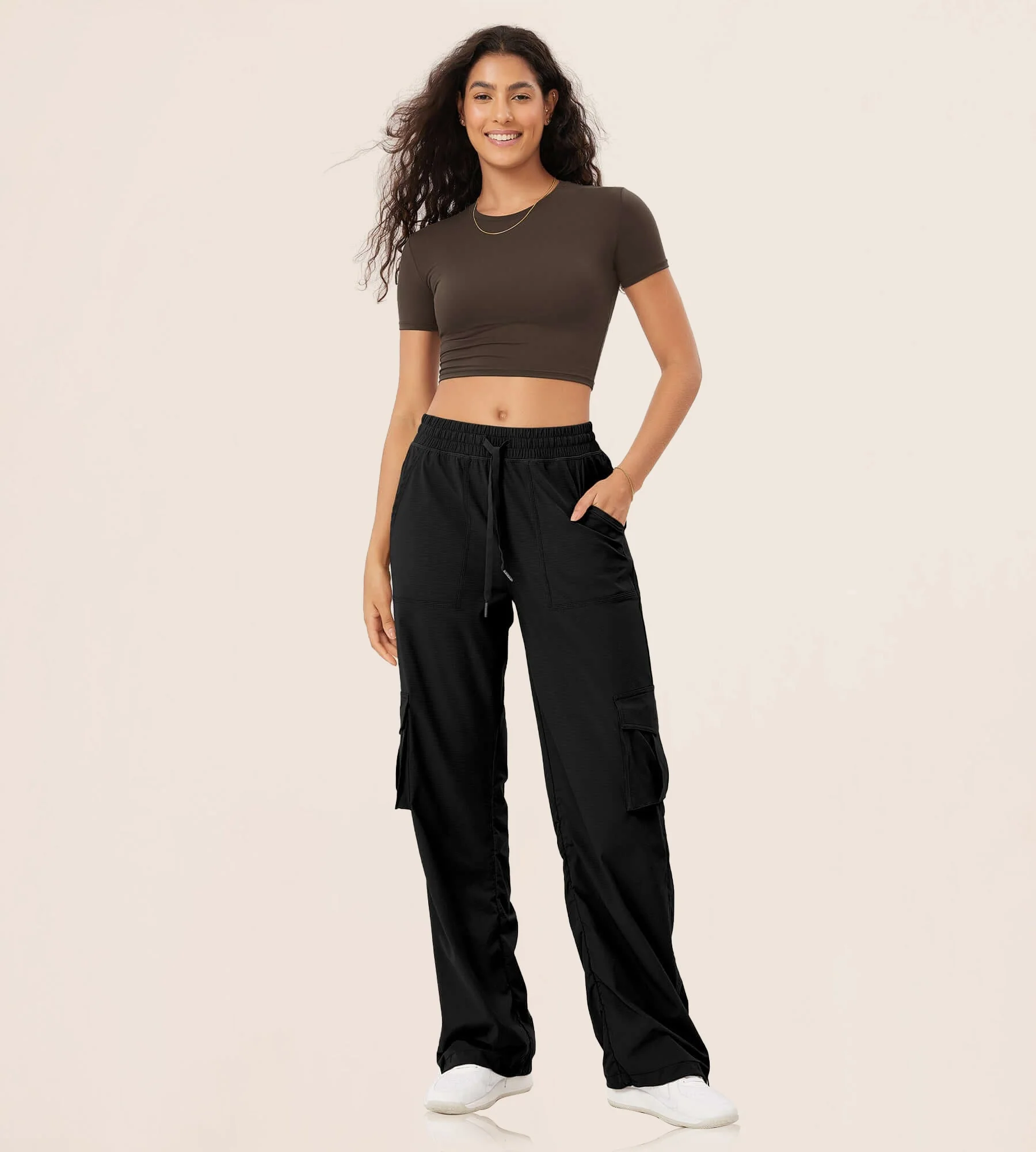 -70%Stretch Woven Relaxed Cargo Cinchable Hems Casual Sweatpants with Pockets—