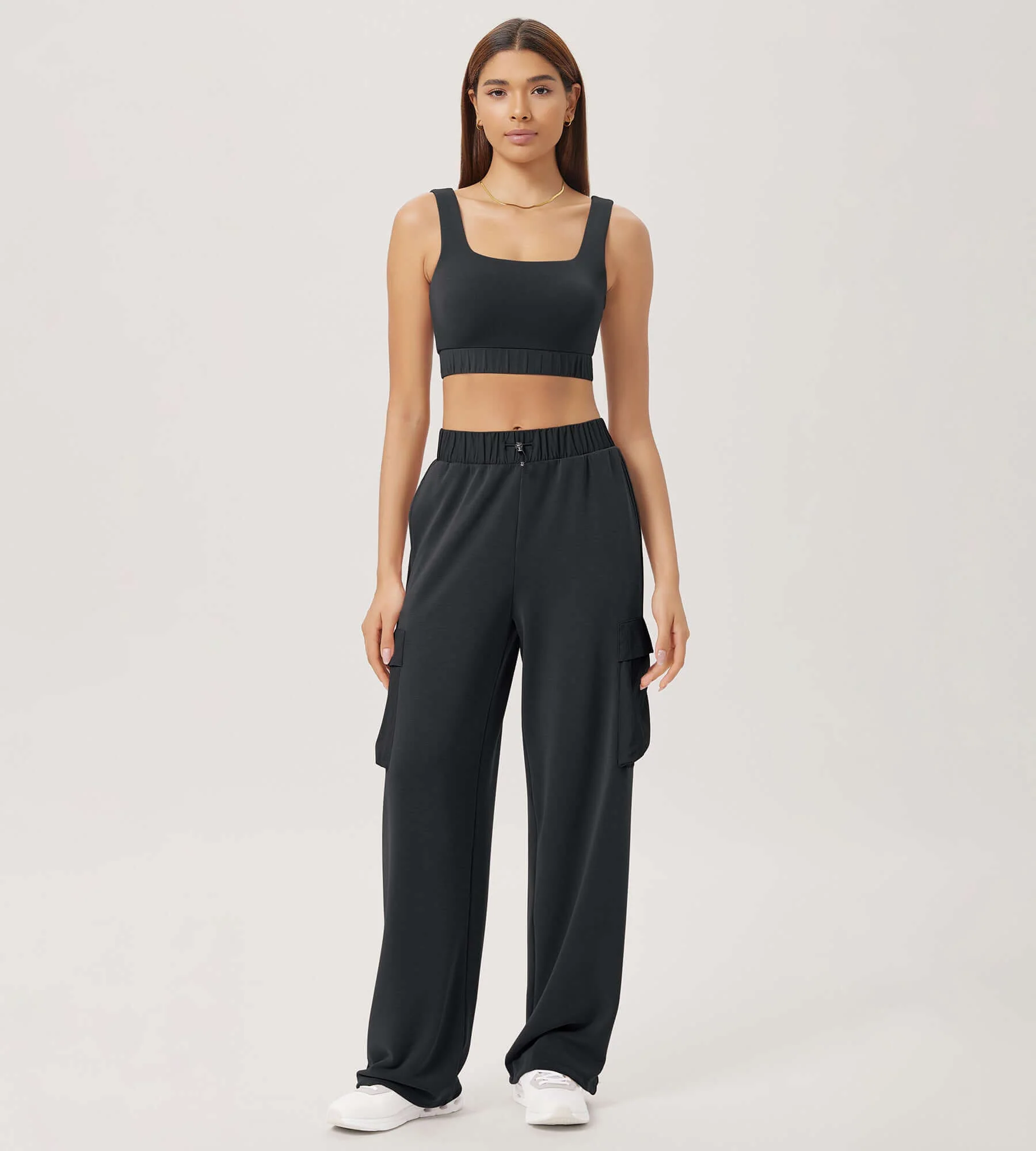 Wide Leg Cargo Adjustable Shockcord Loose Jogger Pants with Pockets